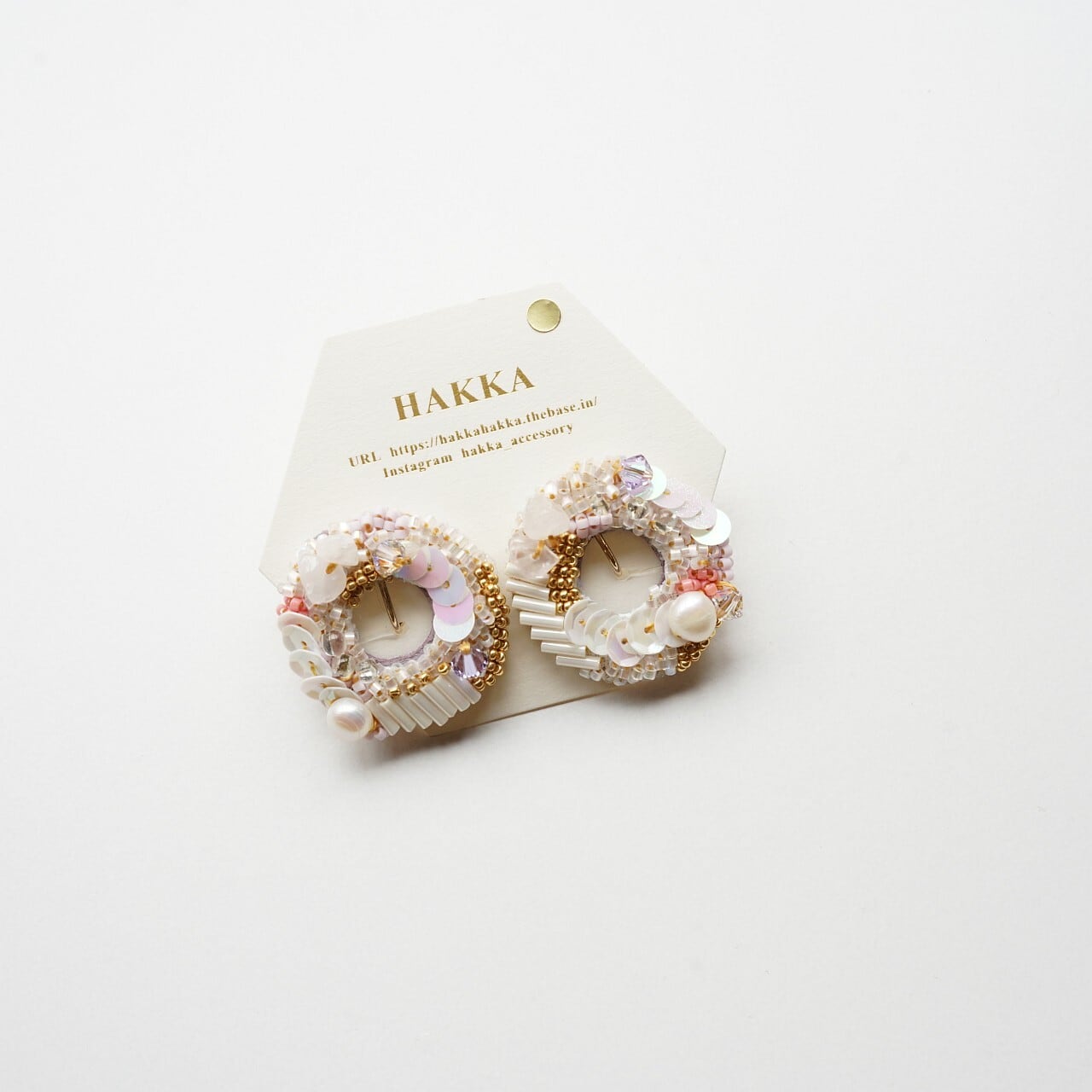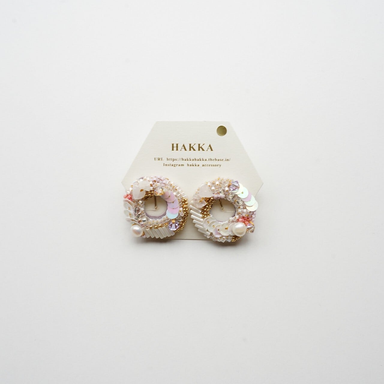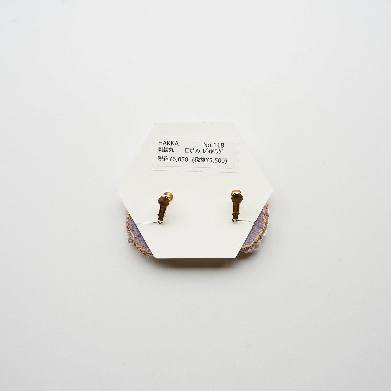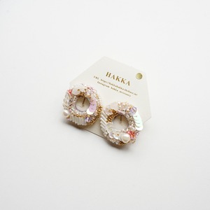 【HAKKA】刺繍イヤリング ピンク118