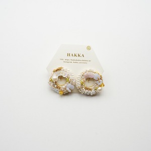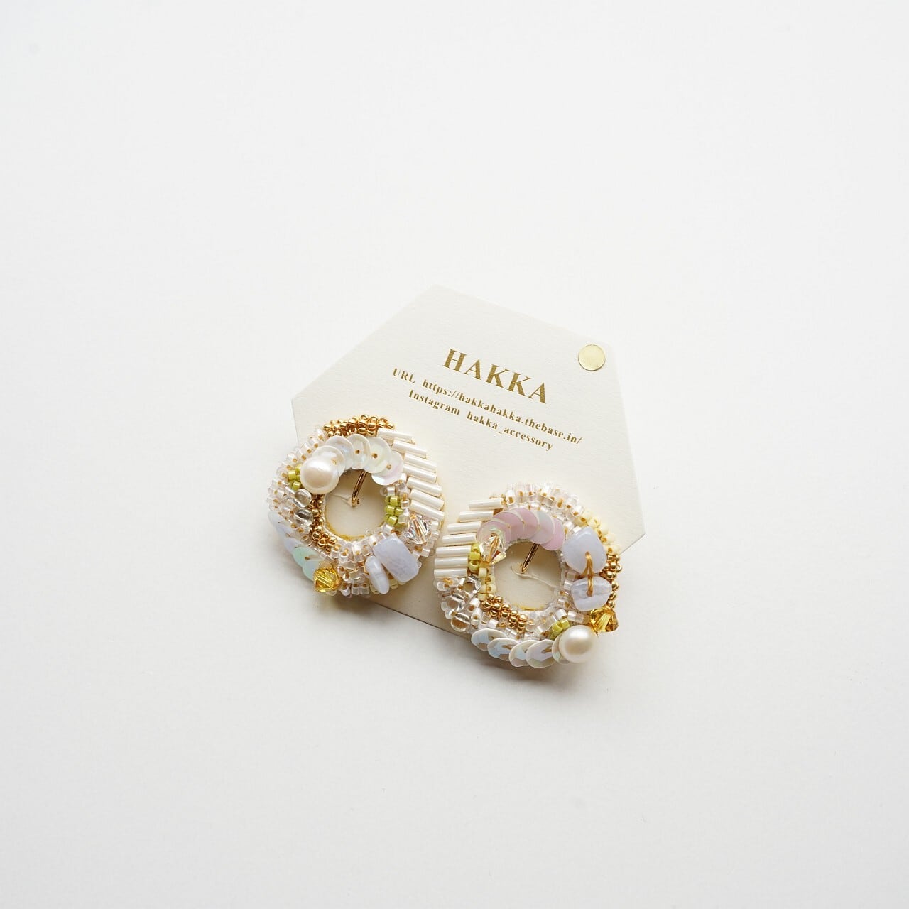 【HAKKA】刺繍イヤリング ブルーグリーン118