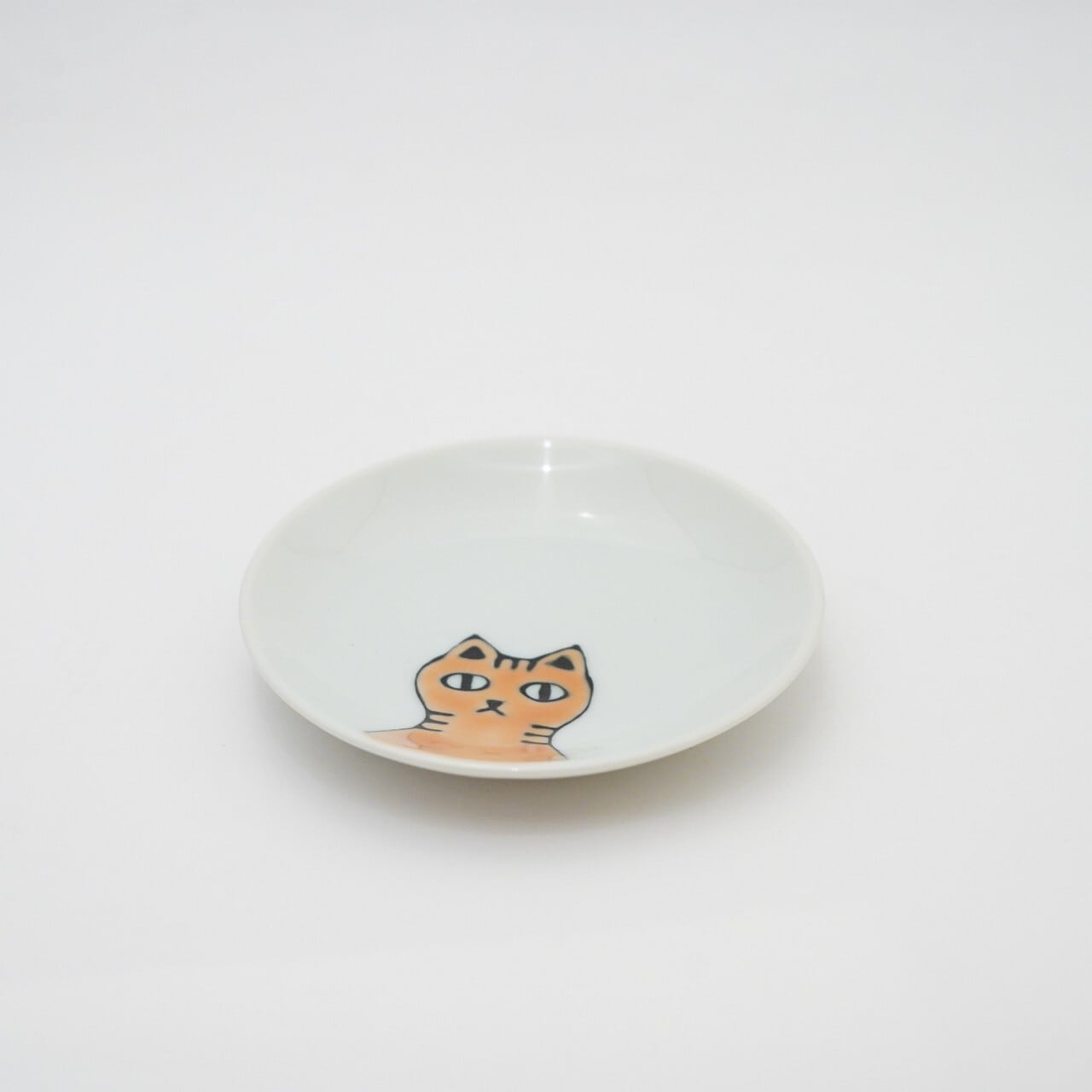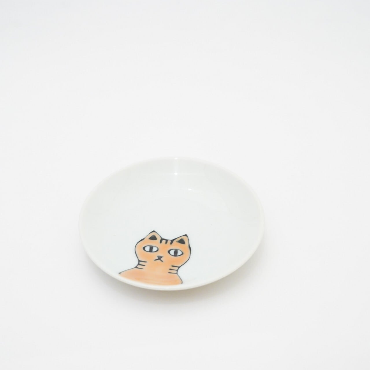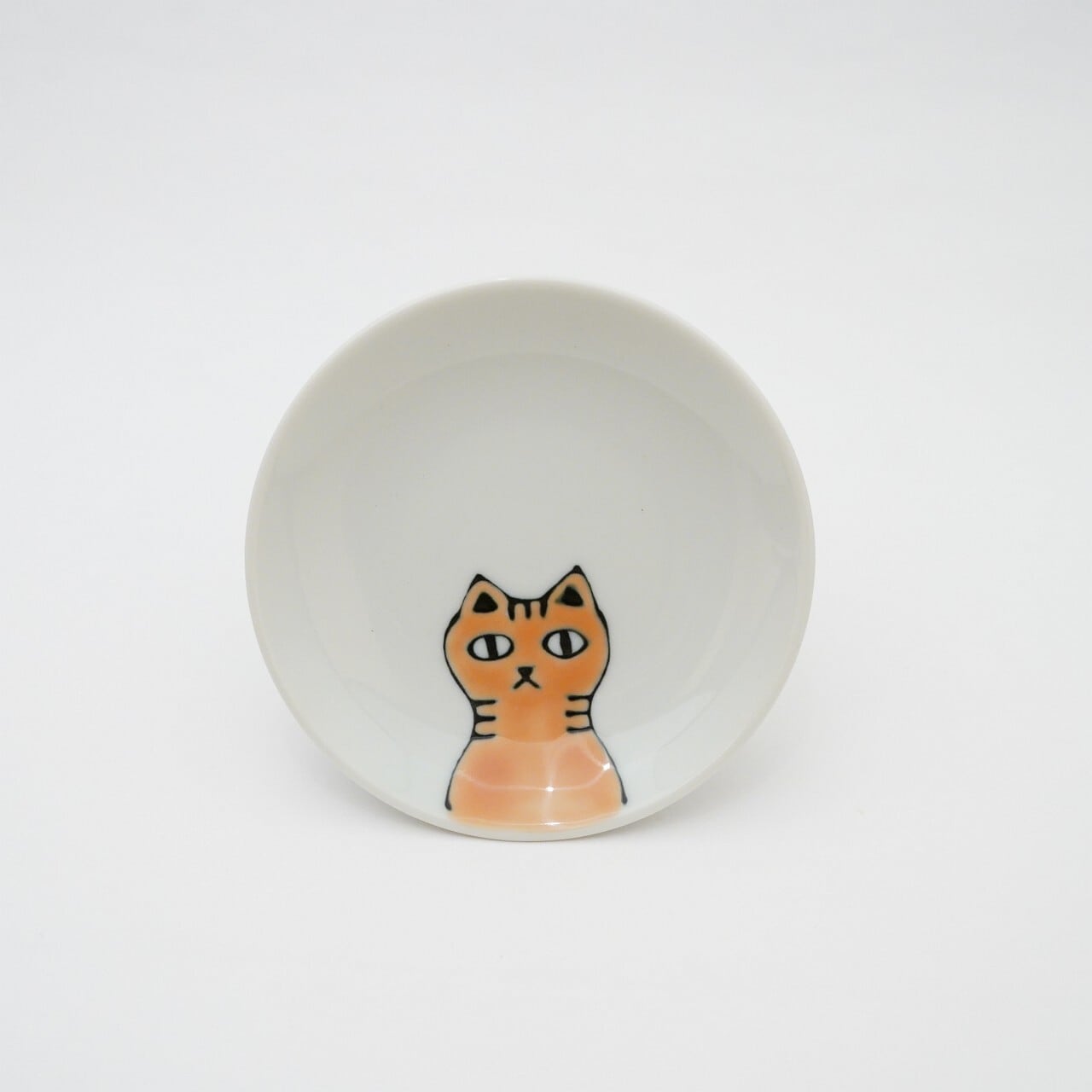 【大新窯】波佐見焼 ネコ会議 3寸皿 オレンジ