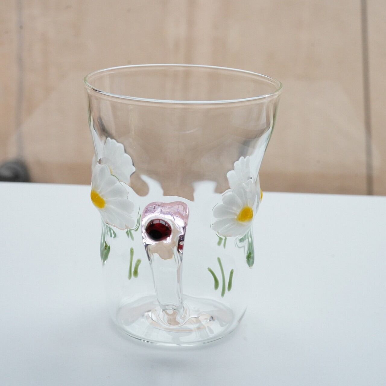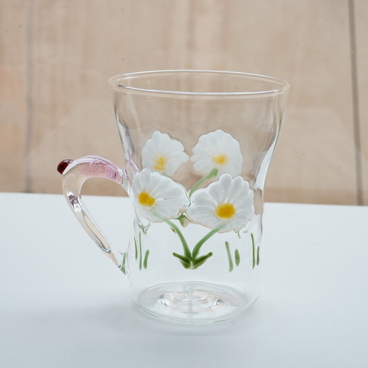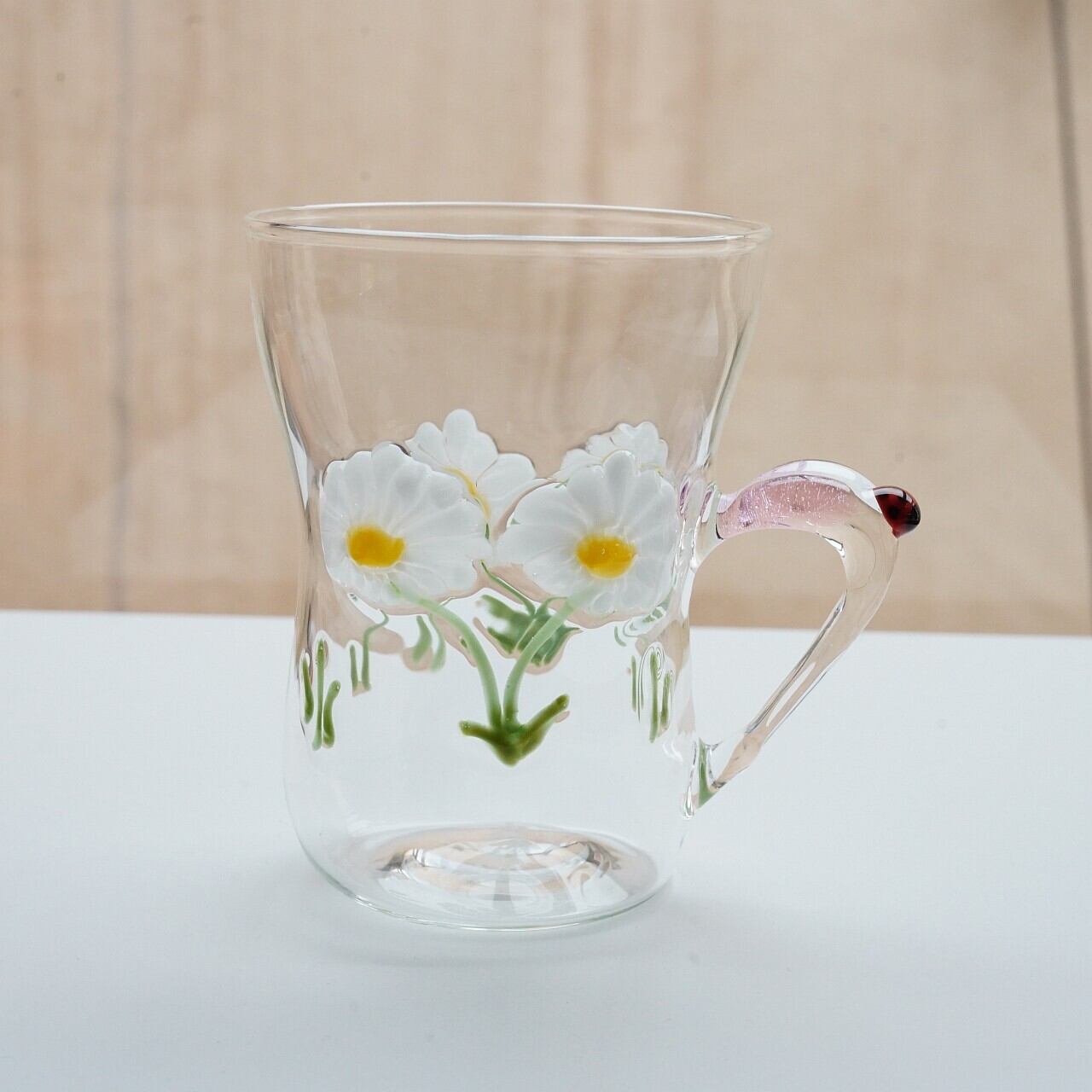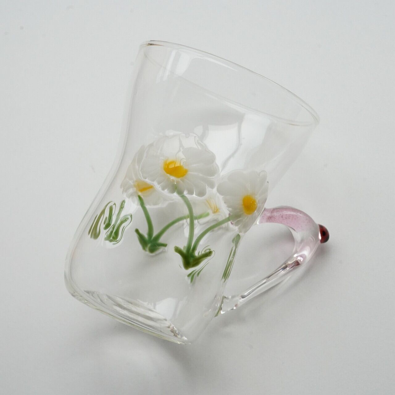 【竹川久仁子】耐熱ガラス 花マグカップ 白 T-1-A