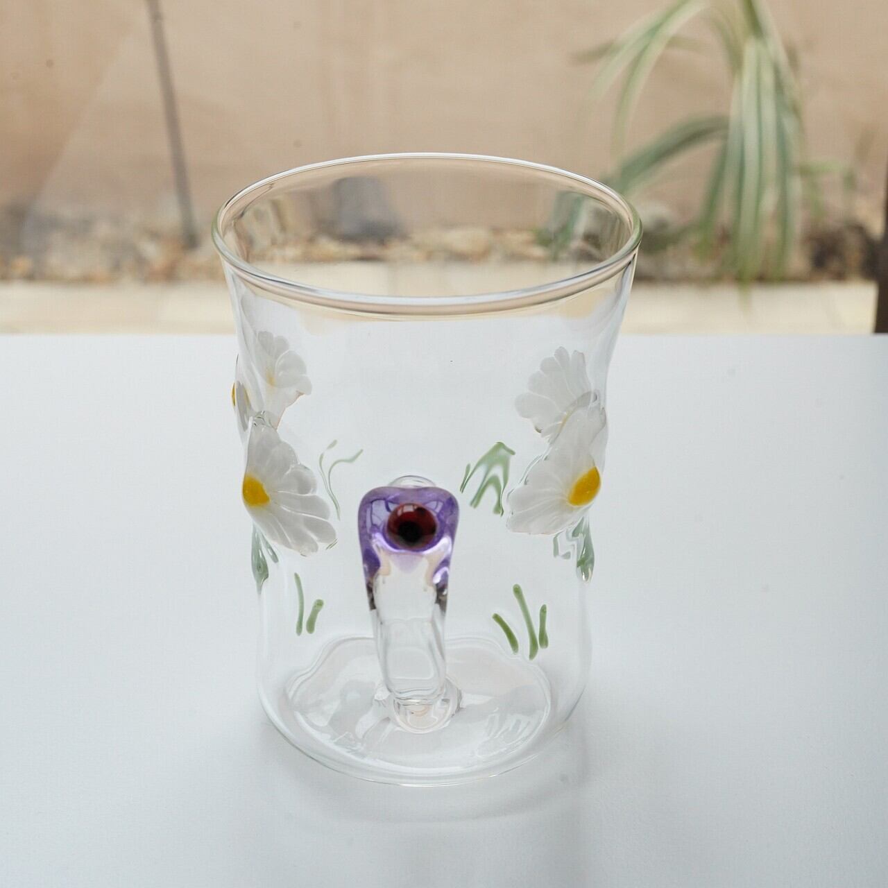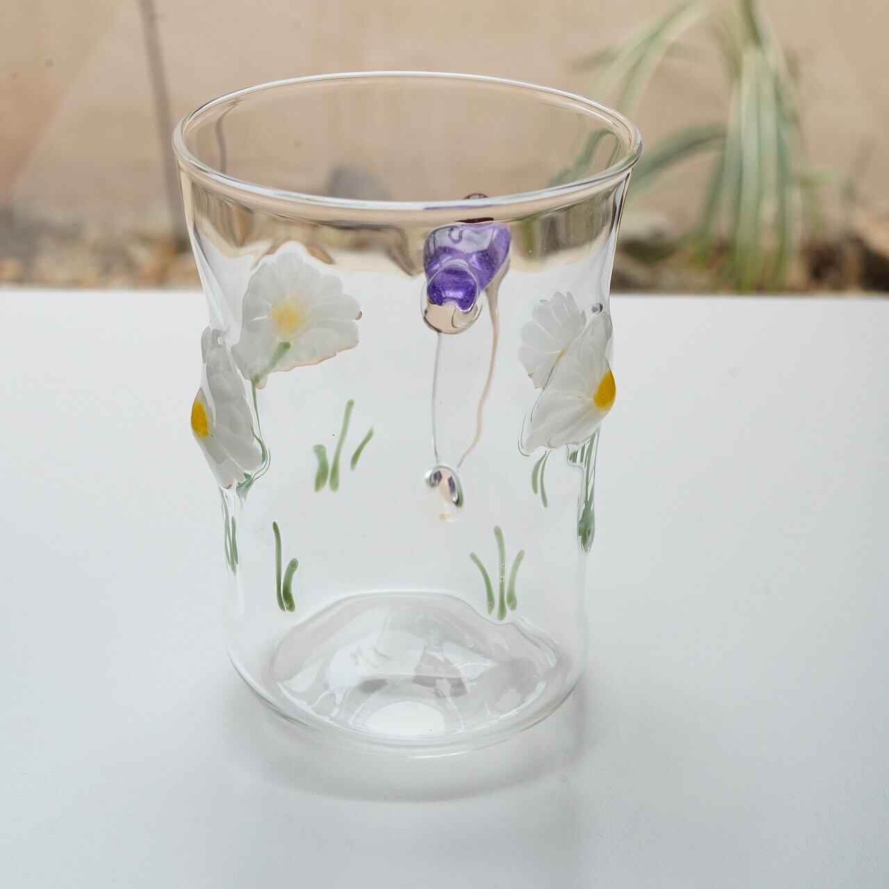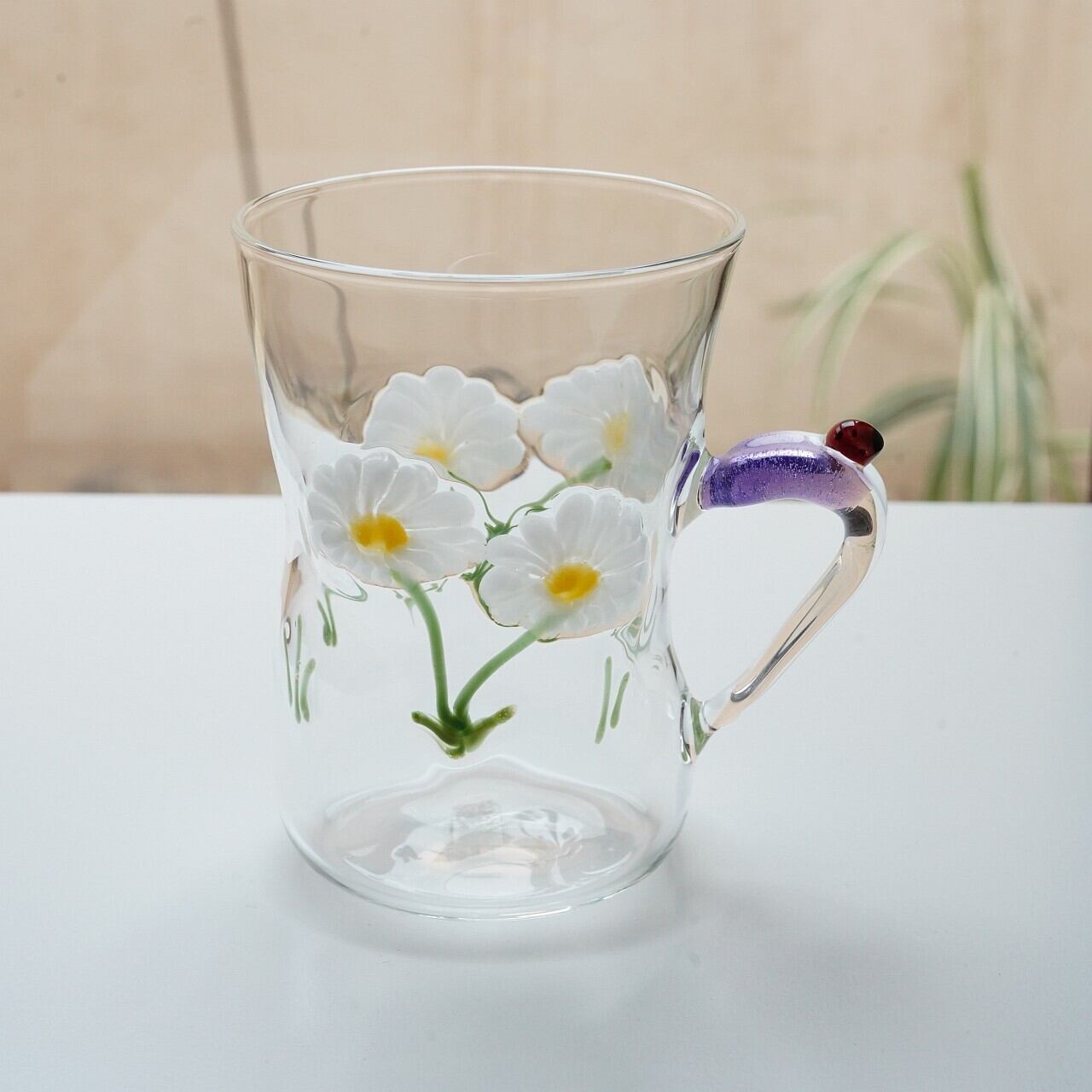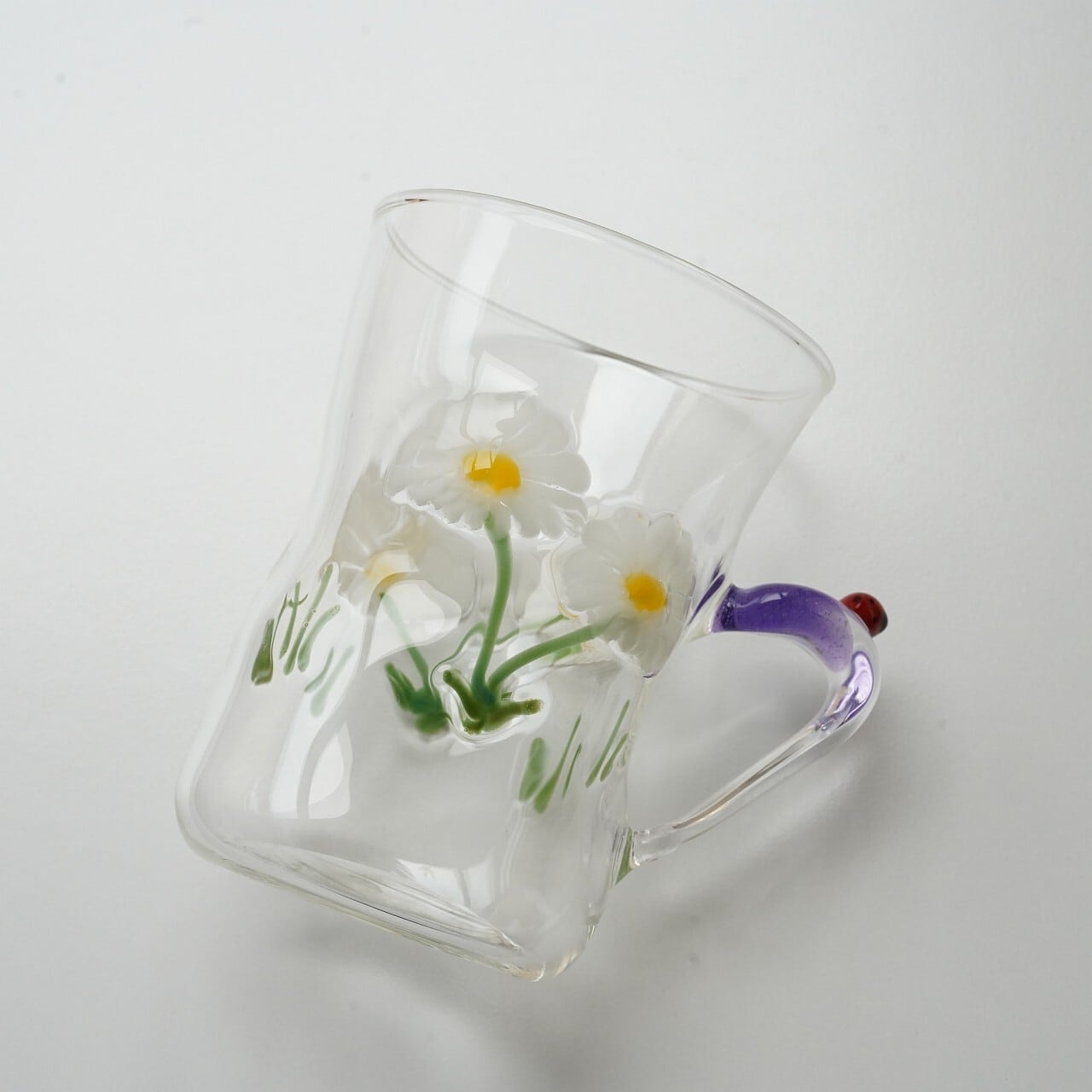 【竹川久仁子】耐熱ガラス 花マグカップ 白 T-1-C