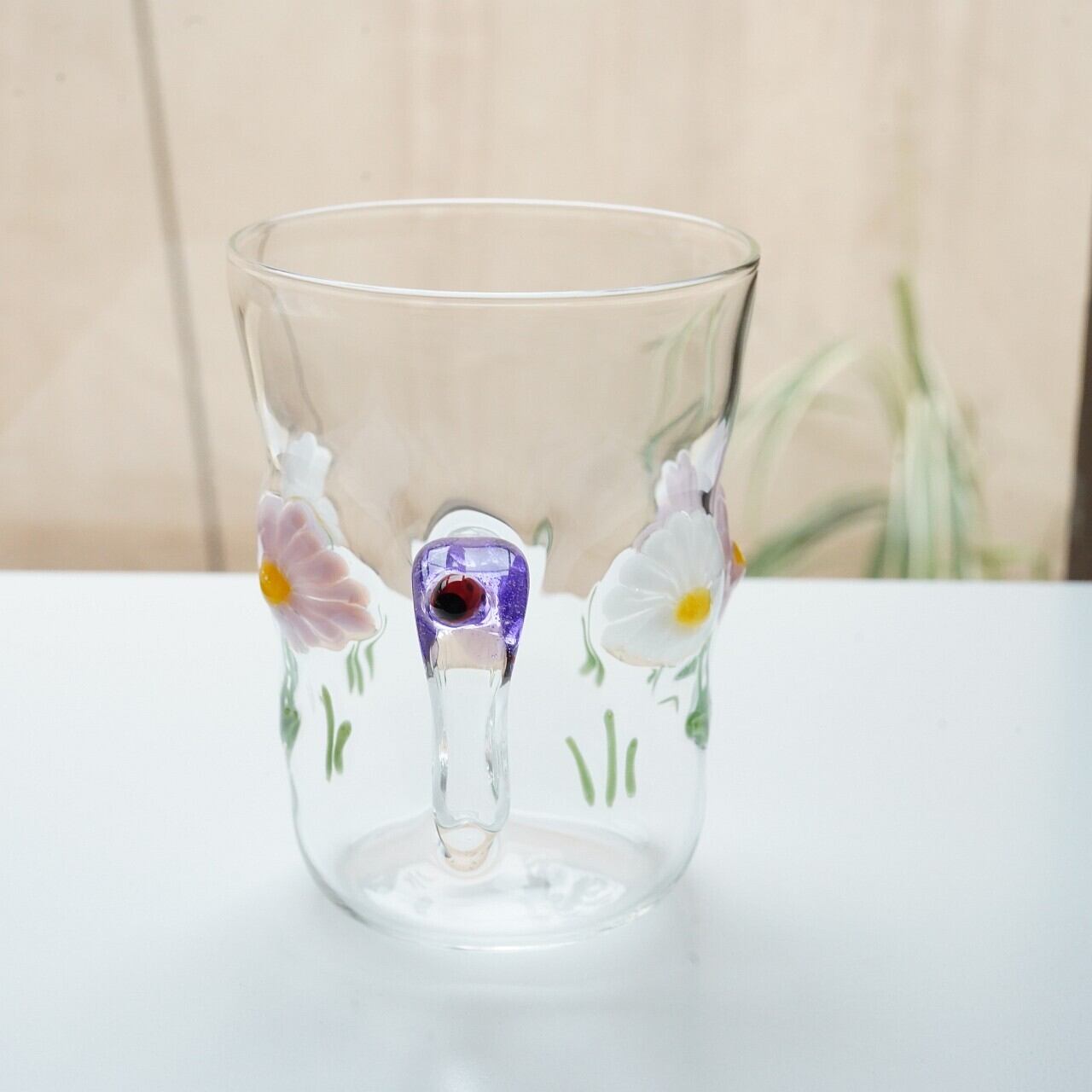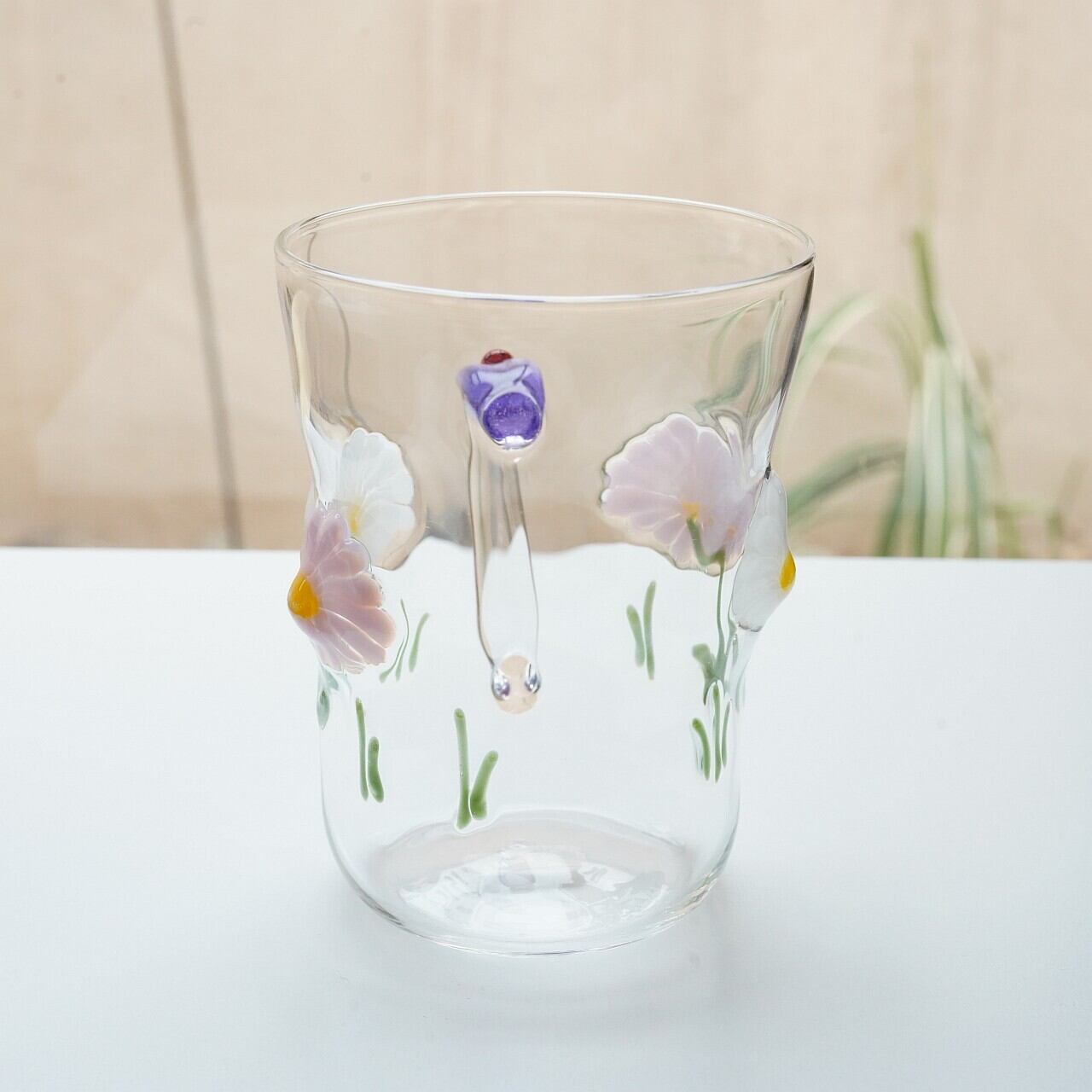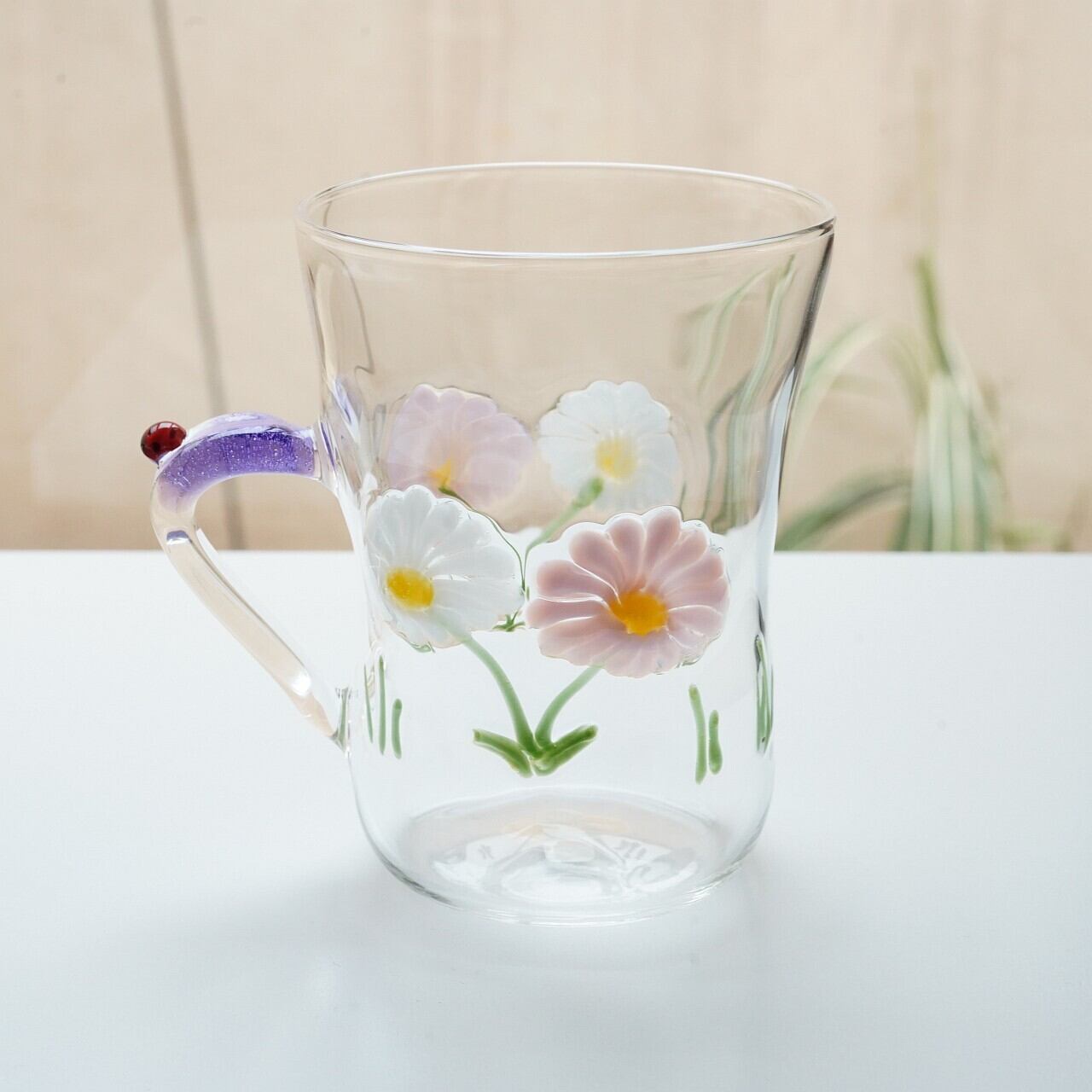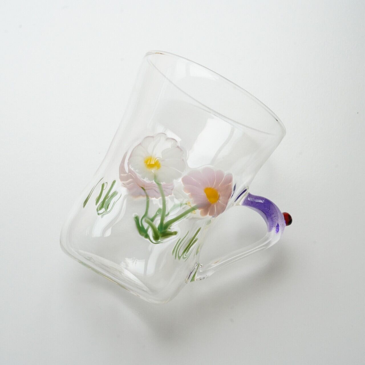 【竹川久仁子】耐熱ガラス 花マグカップ ピンク T-2-C
