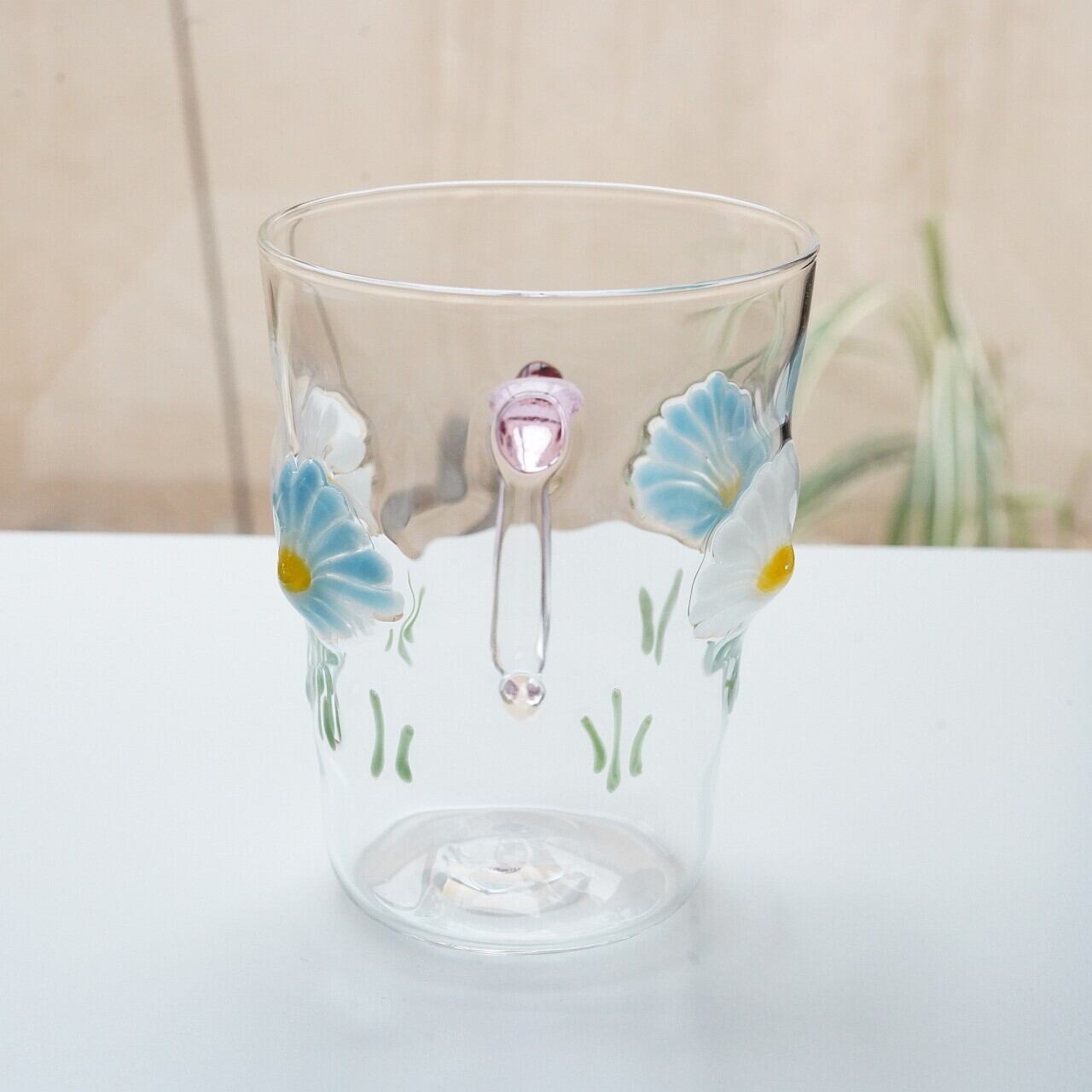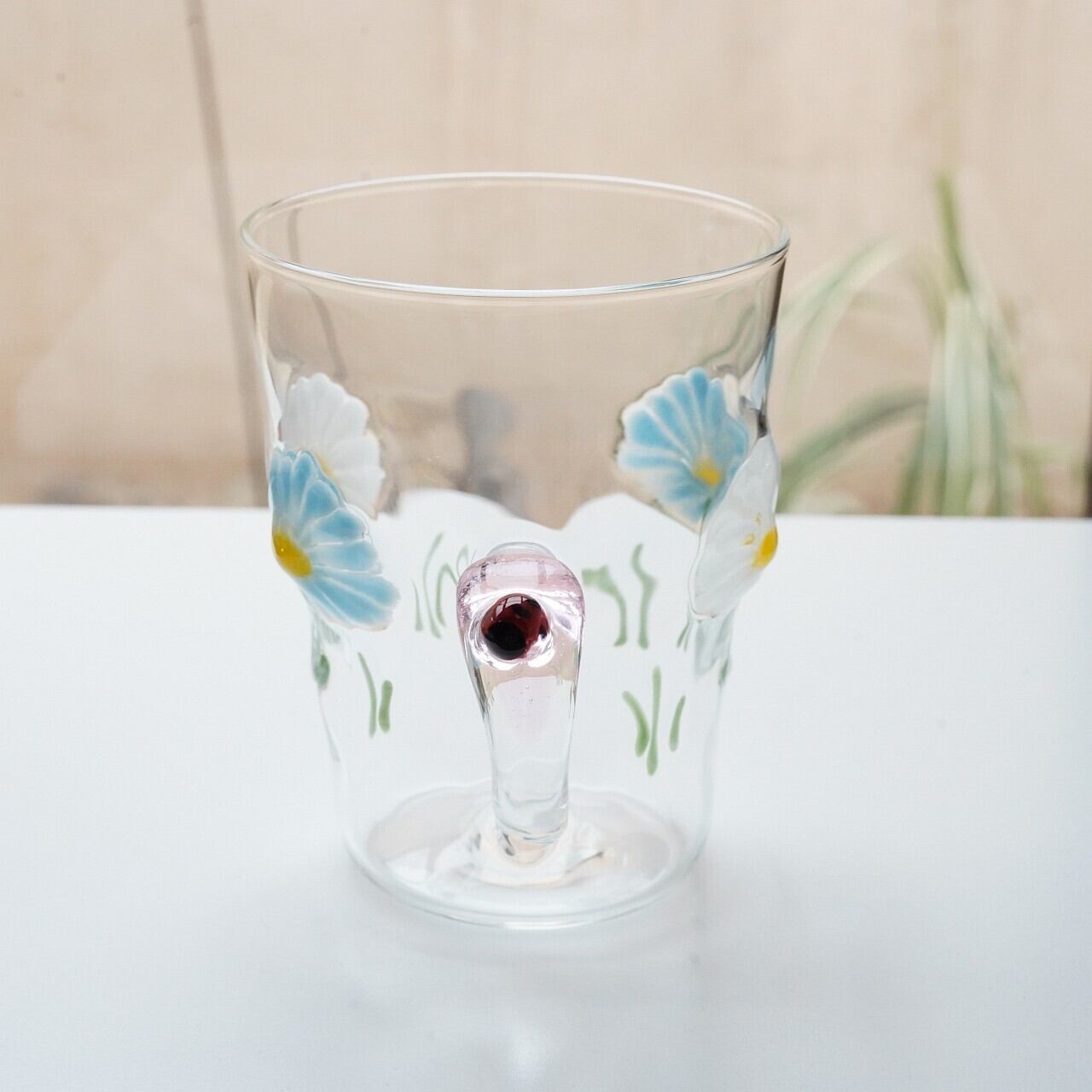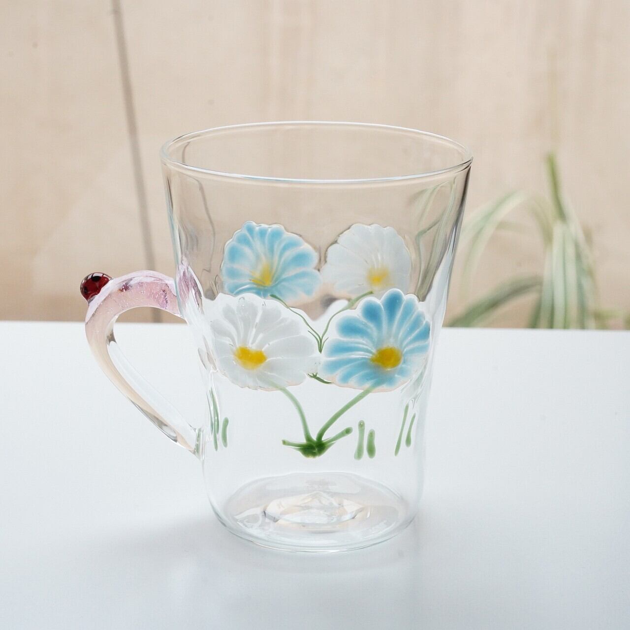 【竹川久仁子】耐熱ガラス 花マグカップ ブルー T-3-A