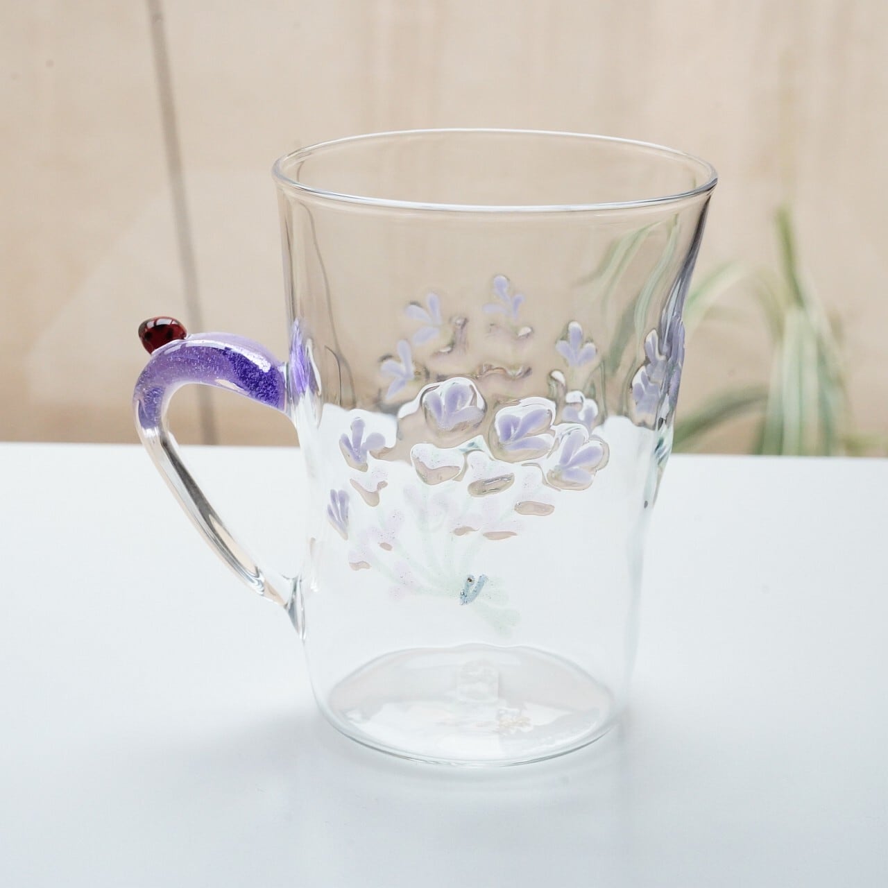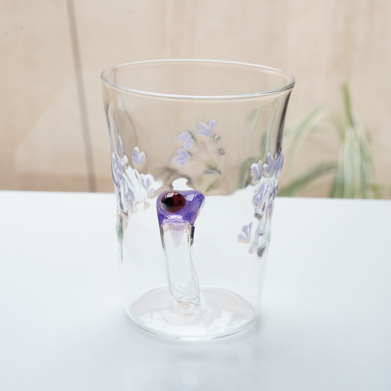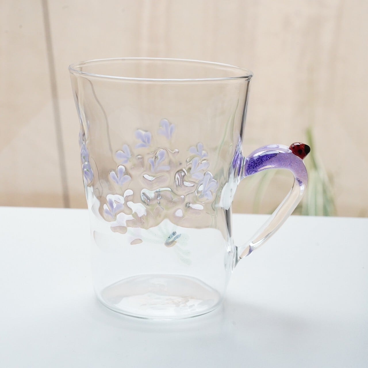 【竹川久仁子】耐熱ガラス 花マグカップ ブルー T-4-A