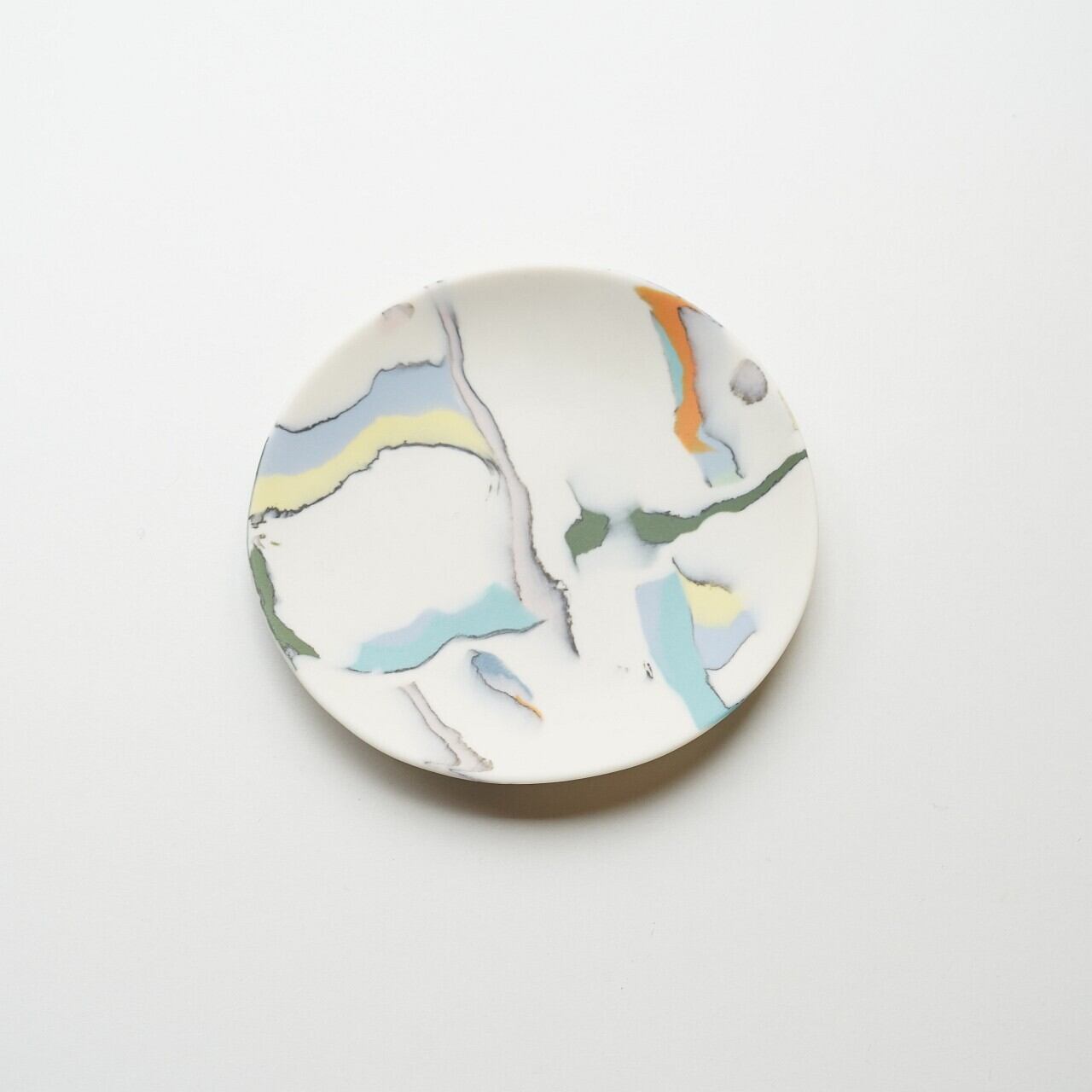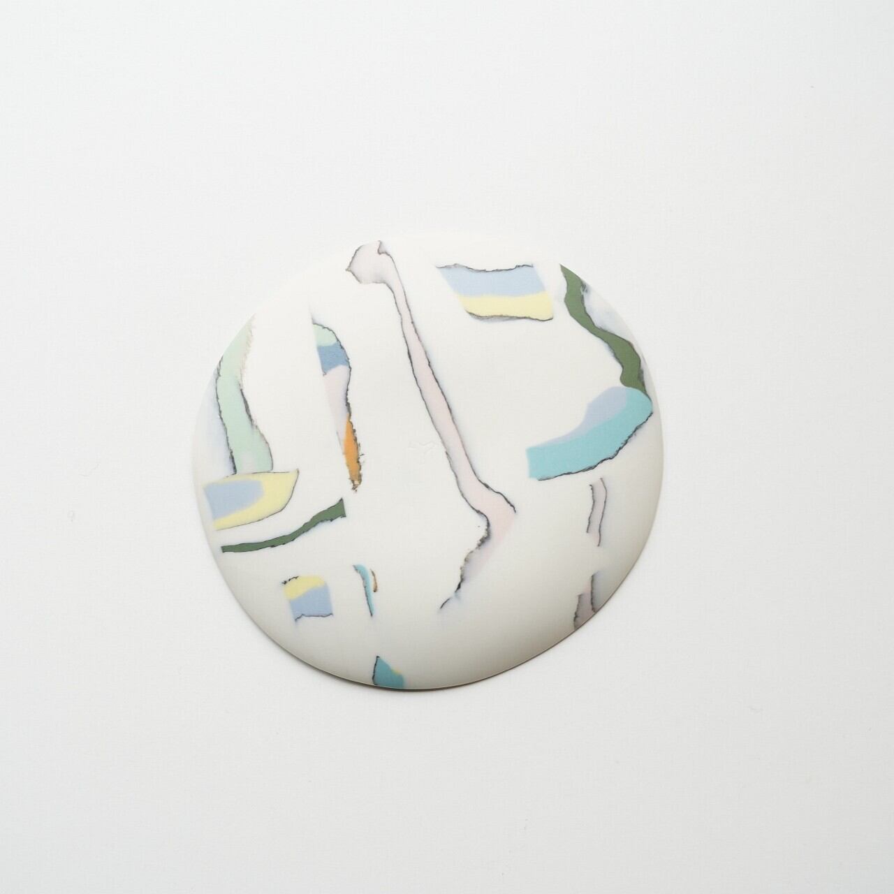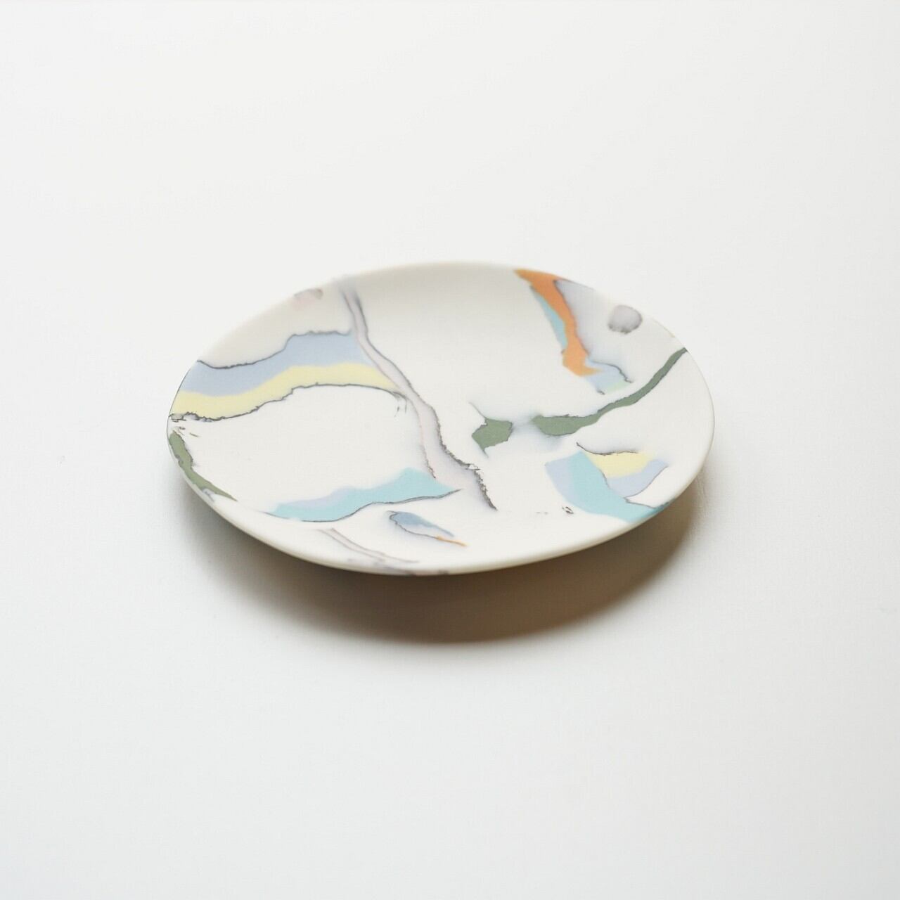 違う色の磁器土を混ぜ合わせ、貼り合わせたり、削ったりして偶然出会う模様、色の組み合わせを楽しみながら制作されています。