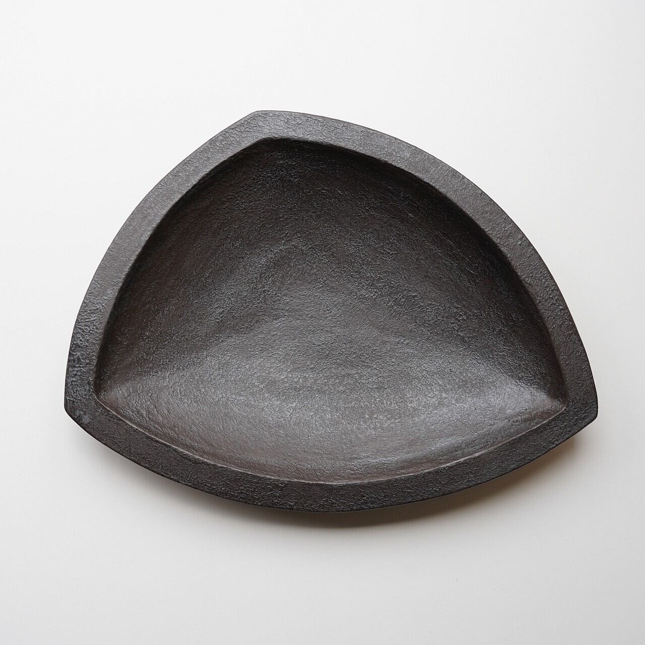 黒い陶土と白い釉薬の濃淡による独特の色合いが特徴のしのぎ技法を得意とする。