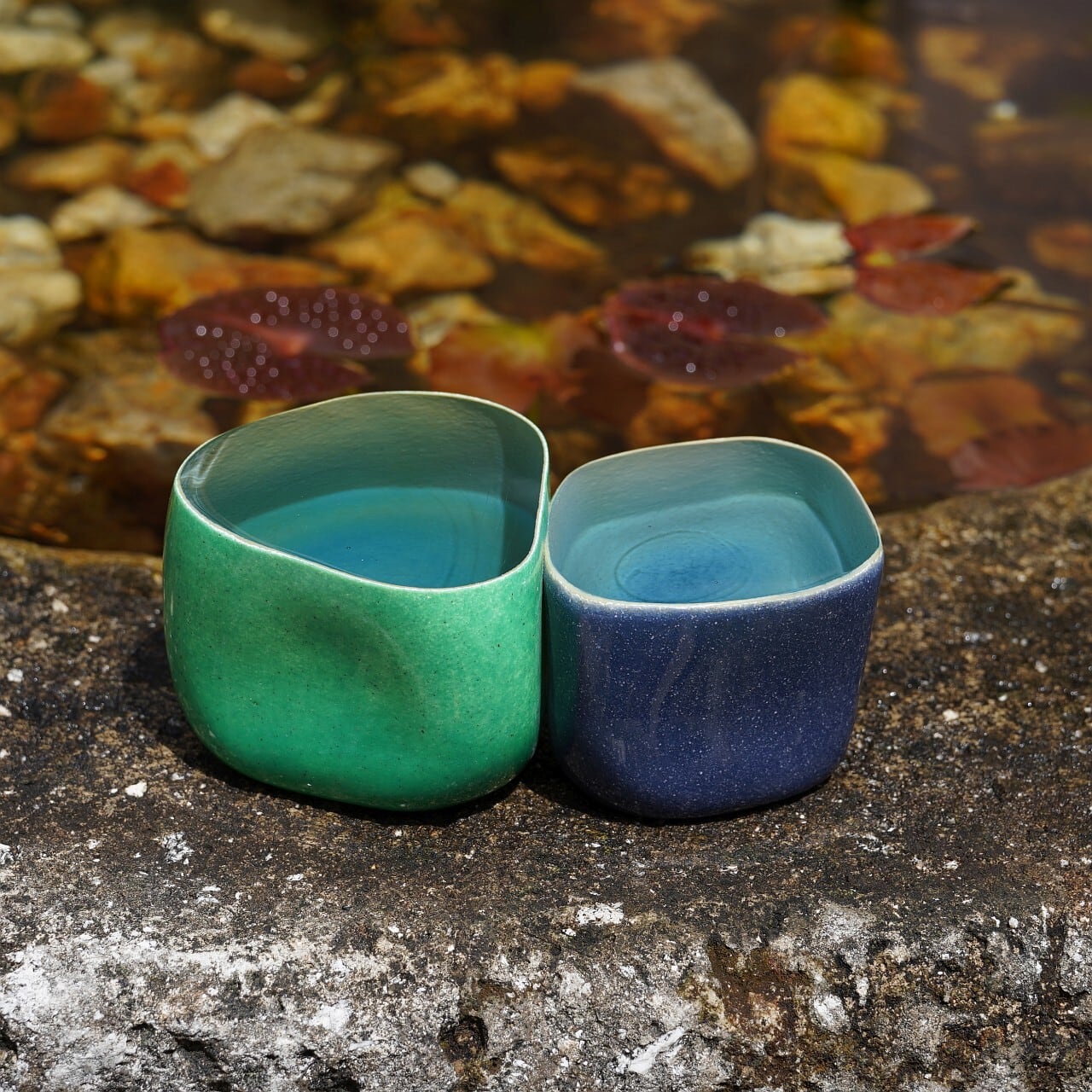 2つの水たまりオブジェがくっついています。